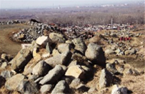 記者沿著一條路進(jìn)入采石場(chǎng)看到,開(kāi)采較規(guī)則的石頭被裝入容積1立方米的木框里,但更多的是,開(kāi)采過(guò)后,在近百畝的地面上,高低不平地散落著大小不一的石頭,有些地方,因?yàn)橥谑^,形成10多米深的溝壑。